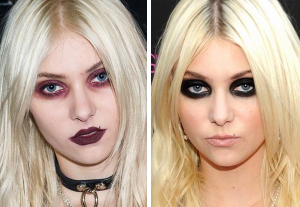 Ah o make fala sério é a melhor parte do look como é Halloween você pode abusar totalmente das cores fortes tanto para os olhos, quanto para a boca. Pra você que gosta de deixar os olhos e a boca em destaque se inspire nos makes da Taylor Momsen !